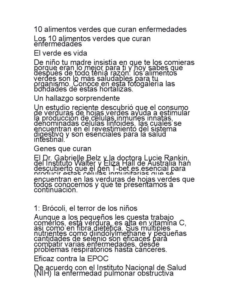Alternativas para Cuidar el Medio Ambiente: LOS ALIMENTOS VERDES QUE CURAN ENFERMEDADES