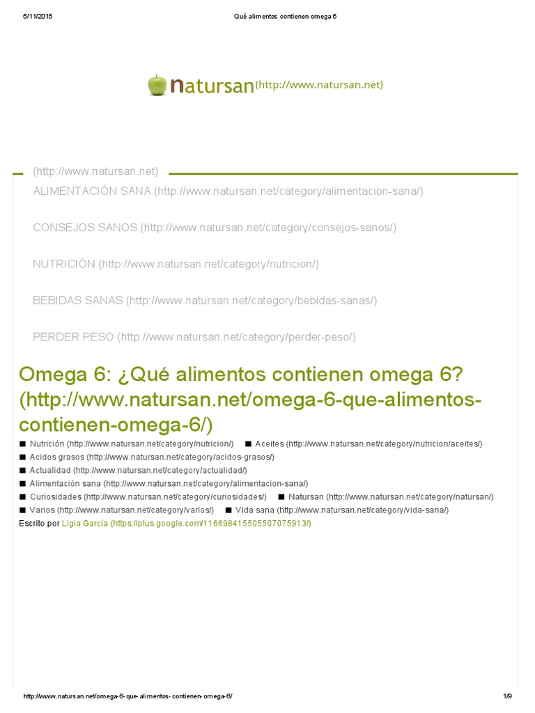 Alimentos Ricos En Omega 3 6 Y 9 Pdf