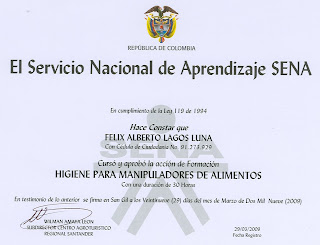El mismo podrá imprimirse las veces que sean necesarias. Un certificado de manipulador de alimentos - una señal valiosa de logro. Cualquier persona que trabaja en un lugar que sirve comida al público, como un restaurante, bar, camión de alimentos, o un hospital, debe tener un Certificado de Manipulador de Alimentos para demostrar que entiende sobre la seguridad alimentaria.