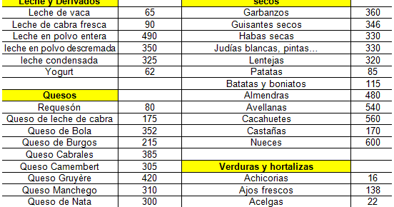 TRAGALDABAS EDUCADO: tabla de kilocalorías de los alimentos