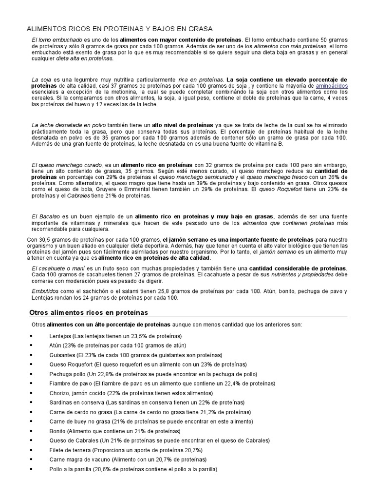 Alimentos Ricos en Proteinas y Bajos en Grasa | Carbohidratos | Proteínas