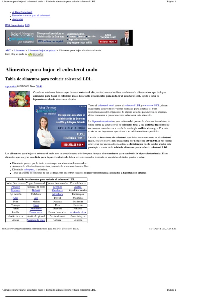 Alimentos Para Bajar El Colesterol Malo __ Tabla de Alimentos Para Reducir Colesterol LDL ...