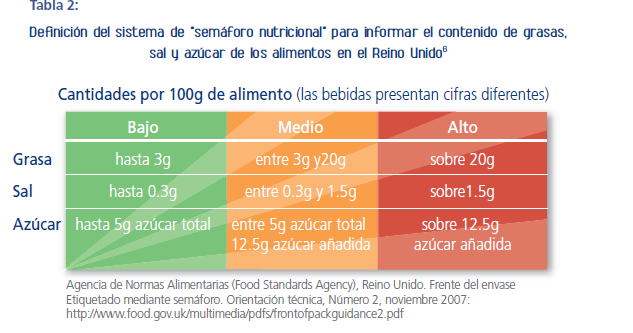 Tabla Informacion Nutricional Alimentos - SEO POSITIVO