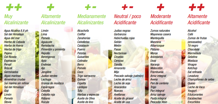 Tabla de Alimentos Alcalinos y Ácidos | Ph Alimentos